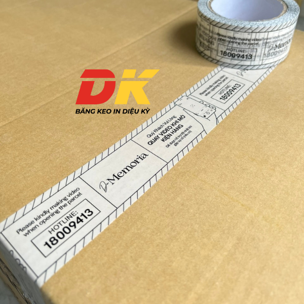Mỗi cuộn băng keo in chữ mang logo De Memoria được thiết kế tỉ mỉ, từ font chữ cho đến màu sắc, sao cho phù hợp với hình ảnh tổng thể của thương hiệu. Đây không chỉ là việc in thông tin lên cuộn băng keo dán, đây là việc tạo ra một ấn phẩm quảng cáo có sức lan toả rộng rãi. Khách hàng khi nhận gói hàng được dán niêm phong bằng băng keo in chữ sẽ ngay lập tức cảm nhận được sự chăm sóc và sự chu đáo từ De Memoria.