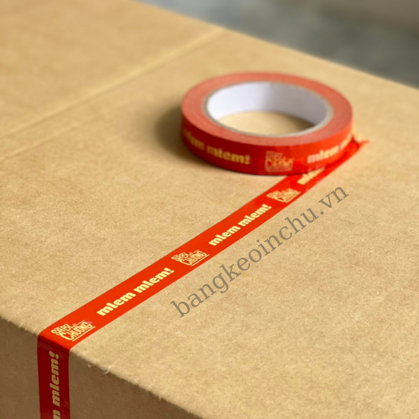 Với chiều rộng 12mm nhỏ gọn cùng nền màu đỏ cam và chữ trắng, đây là loại băng keo in chữ thích hợp sử dụng tại các quán cơm tấm, quán trà sữa, quán cà phê..vv bạn có thể dán một đường xung quanh để đảm bảo sản phẩm của bạn sẽ không bị tràn hư hại do vận chuyển đường xa và cũng góp phần xây dựng hình ảnh cho thương hiệu của bạn. nếu bạn muốn có một sản phẩm tương tự nhưng dành riêng cho thương hiệu của bạn hãy đến với chúng tôi, chúng tôi sẽ cung cấp cho bạn mẫu băng keo phù hợp và chất lượng tốt nhất. Liên hệ qua số hotline để được tư vấn nhé!