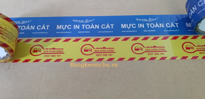 Băng keo in logo bao gồm một lớp băng dính bám dính tốt trên mọi bề mặt, được làm từ loại keo đặc biệt chuyên dụng. Mặt khác của bang keo in logo được in các hình ảnh, logo thương hiệu lên lớp màng. Độ bao phủ cực tốt được đảm bảo không làm trầy logo trong quá trình sử dụng. Ngoài ra, băng keo in logo còn được sử dụng để đóng các thùng hàng, chính vì vậy nó được xem là hình thức quảng bá sản phẩm tối ưu và đỡ tốn kém nhất.